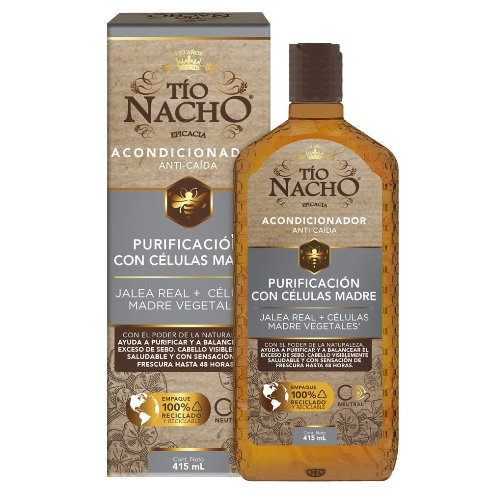Tio Nacho Purificación con Células Madre, Acondicionador. Combina células madre vegetales de Goji, Marrubio y Centella Asiática con el poder dela Jalea Real para actuar sobre tu cabello y las puntas, eliminando células muertas y residuos.