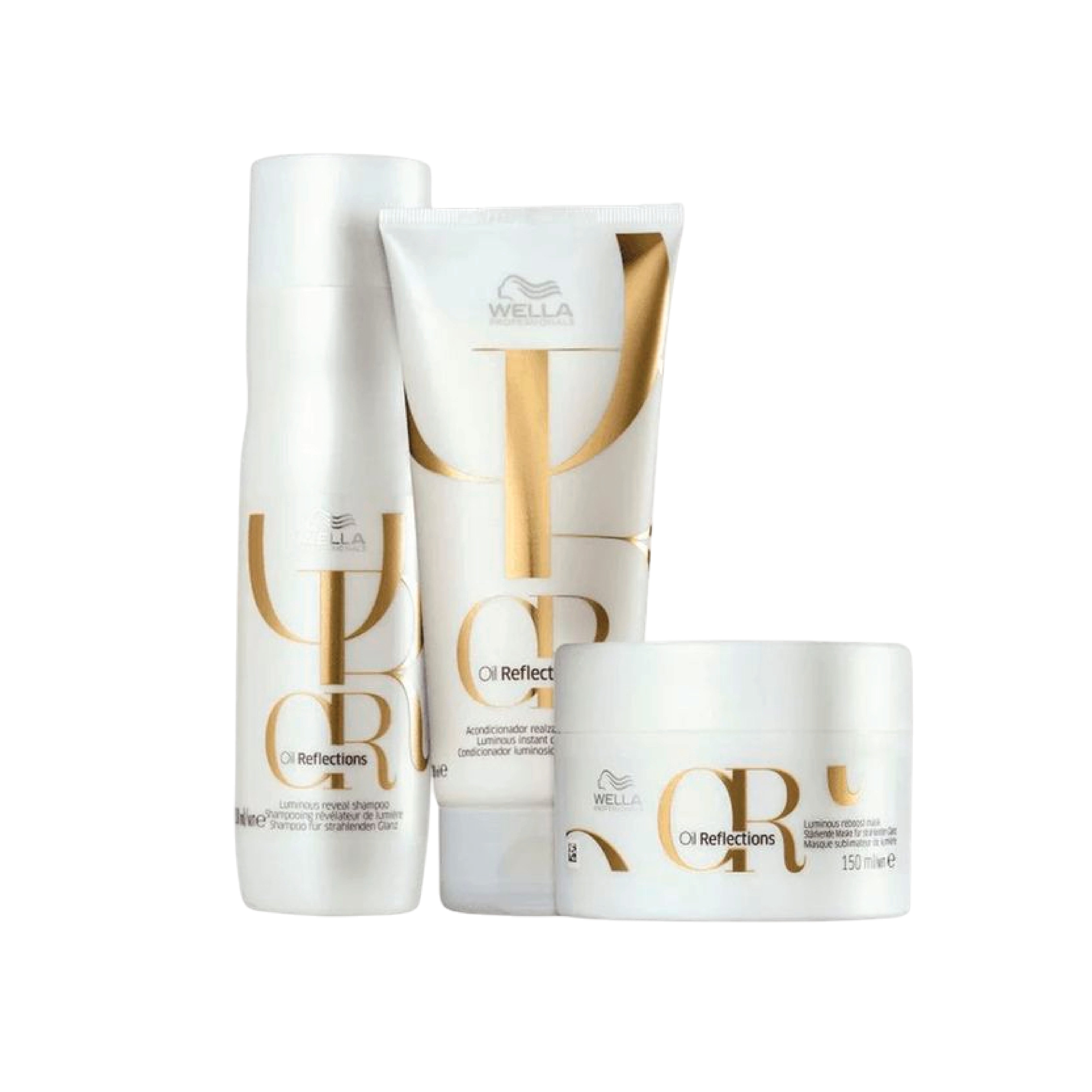 El Kit Wella Oil Reflections combina shampoo, acondicionador y mascarilla para lograr un cabello más brillante, suave y controlado desde el primer uso.