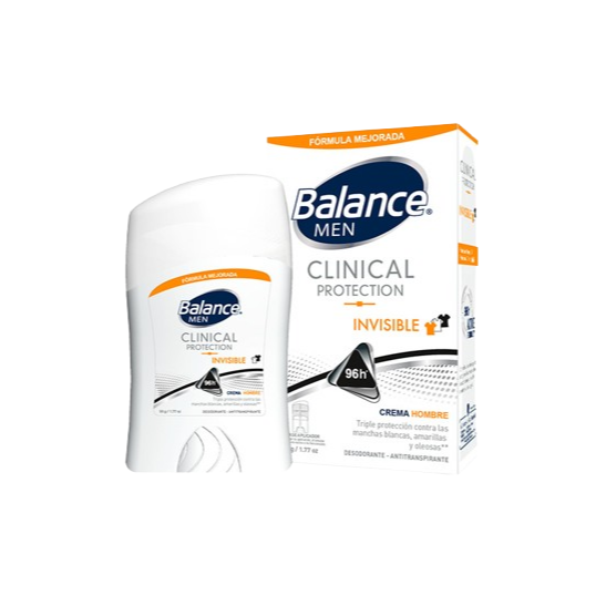 Balance Clinical Invisible te protege eficazmente con Active Technology hasta por 96 horas*, mientras cuidaa tu ropa de las manchas blancas, amarillas y oleosas**