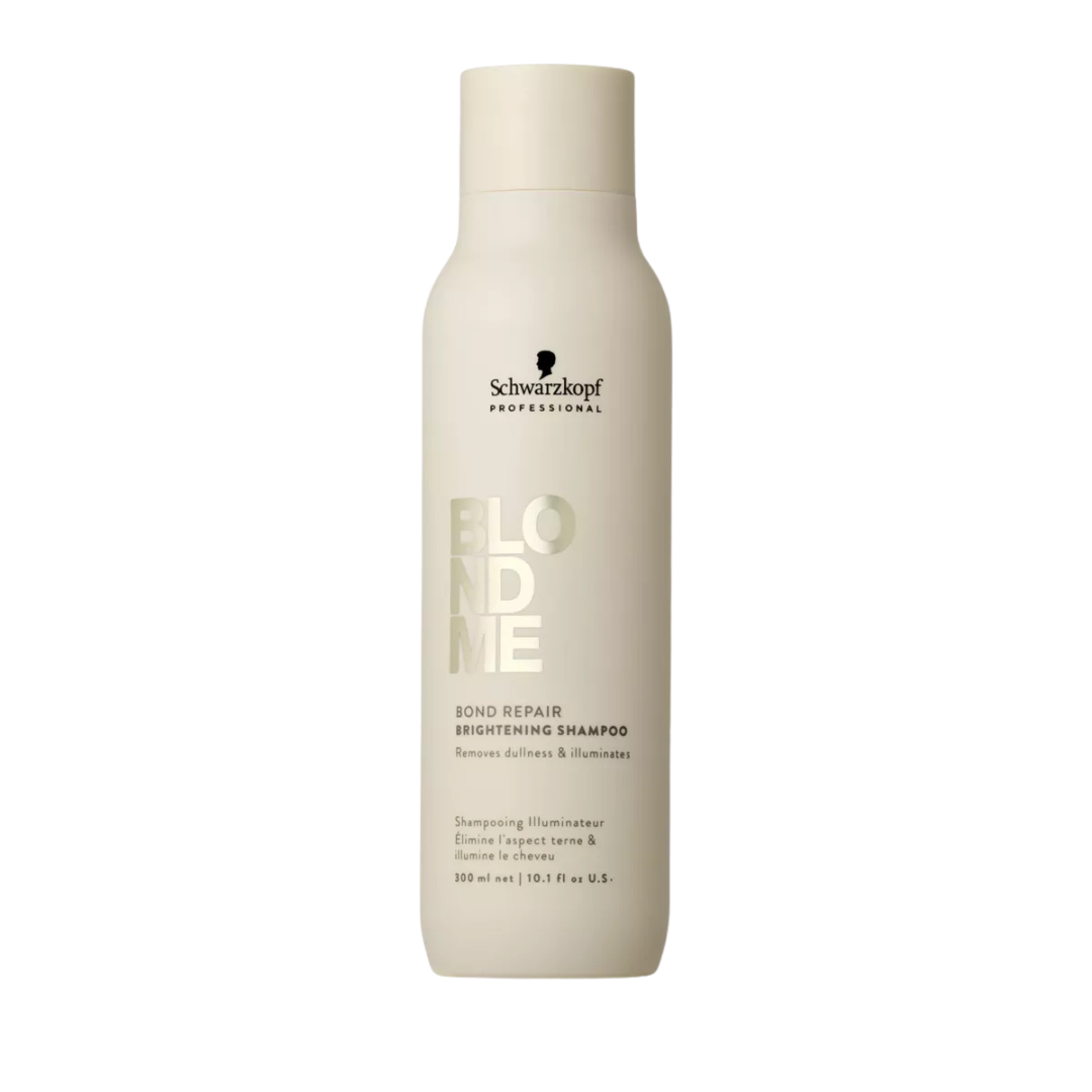 El shampoo Iluminador Bond Repair de BLONDME, con la TECNOLOGÍA BOND REPAIR, limpia e ilumina de manera visible el cabello rubio eliminando los restos de producto, las impurezas y los contaminantes medioambientales y ayuda a crear puentes internos reparando los daños equivalentes a dos servicios de aclaración tras un solo uso. Su fórmula ligera e hidratante con Aceite de Almendras y Té Blanco deja el cabello flexible y con un brillo de aspecto sano.