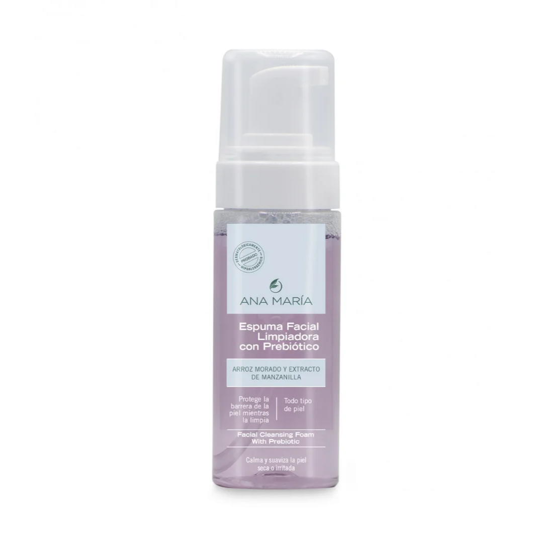 Espuma facial limpiadora con Prebiótico que protege la barrera de la piel. Elaborada con extractos de Arroz Morado y extracto de Manzanilla que dejan la piel suave y revitalizada. Desarrollada para todo tipo de piel