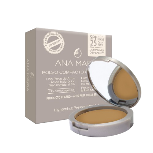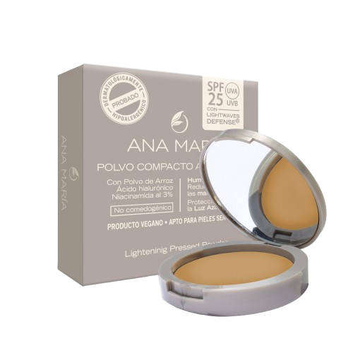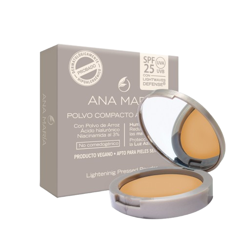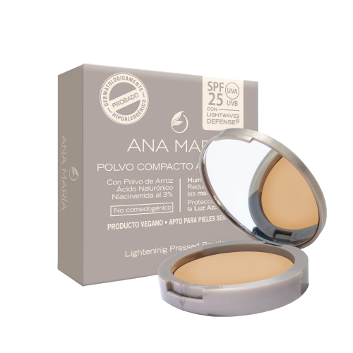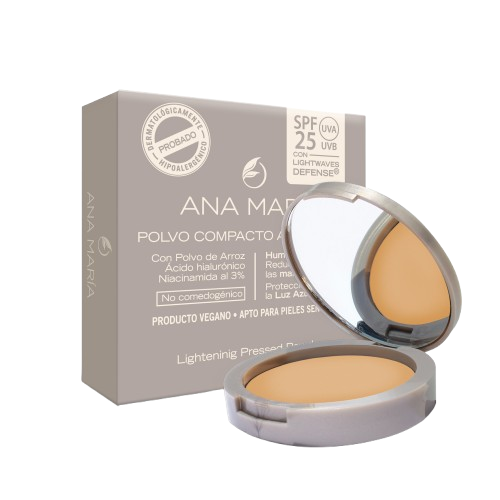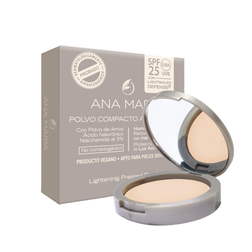 Polvo facial formulado con Niacinamida que aclara y unifica el tono además de proteger la barrera de la piel, con Ácido Hialuronico que ayuda a humectar, fino Polvo de Arroz que no reseca la piel ni obstruye los poros. Con Tecnología Lightwaves Defense®, que contiene células madre de Flor de Jazmín y Extracto de Mangostino, que deja la piel más firme, suave y radiante. Contiene Aloe Vera y emolientes 100% naturales. Previene el envejecimiento prematuro.
