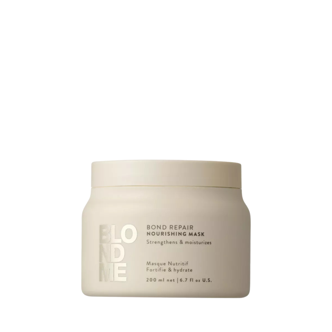 El Tratamiento Nutritivo Bond Repair de BLONDME, con la TECNOLOGÍA BOND REPAIR, nutre en profundidad el cabello sin apelmazarlo y suaviza la superficie capilar porosa dejando una sensación de cabello hidratado. Fortifica el cabello creando puentes internos y reparando los daños equivalentes a dos servicios de aclaración tras un solo uso.
